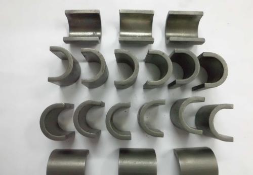 在粉末冶金生產(chǎn)中, 鐵粉的用量比其金屬粉末大得多。 鐵粉的 60% ~ 70% 用于制造粉末冶金零件。主要類型有鐵基材料、鐵鎳合金、鐵銅合金及鐵合 金和鋼。粉末冶金鐵基結(jié)構(gòu)零件具有精度較高,表面粗糙值小,不需或只需 少量切削加工,節(jié)省材料,生產(chǎn)率高,制品多孔,可浸潤滑油,減摩、減振、 消聲等特點(diǎn)。 廣泛用于制造機(jī)械零件, 如機(jī)床上的調(diào)整墊圈、 調(diào)整環(huán)、 端蓋、 滑塊、底座、偏心輪,汽車中的油泵齒輪、活塞環(huán),拖拉機(jī)上的傳動齒輪、 活塞環(huán),以及接頭、隔套、油泵轉(zhuǎn)子、擋套、滾子等。 粉末冶金鐵基結(jié)構(gòu)材料的牌號用“粉”、“鐵”、“構(gòu)”三字的漢語拼 音字首“FTG”,加化合碳含量的萬分?jǐn)?shù)、主加合金元素的符號及其含量的 百分?jǐn)?shù)、輔加合金元素的符號及其含量的百分?jǐn)?shù)和抗拉強(qiáng)度組成。如 FTG60 -20 , 表示化合碳量 0.4% ~ 0.7%, 抗拉強(qiáng)度 200MPa 的粉末冶金鐵基結(jié)構(gòu)材料; FTG60Cu3Mo-40 ,表示化合碳量 0.4% ~ 0.7% ,合金元素含量 Cu2% ~ 4% 、 Mo0. 5% ~ 1.0% ,抗拉強(qiáng)度 400MPa 的粉末冶金鐵基結(jié)構(gòu)材料。
