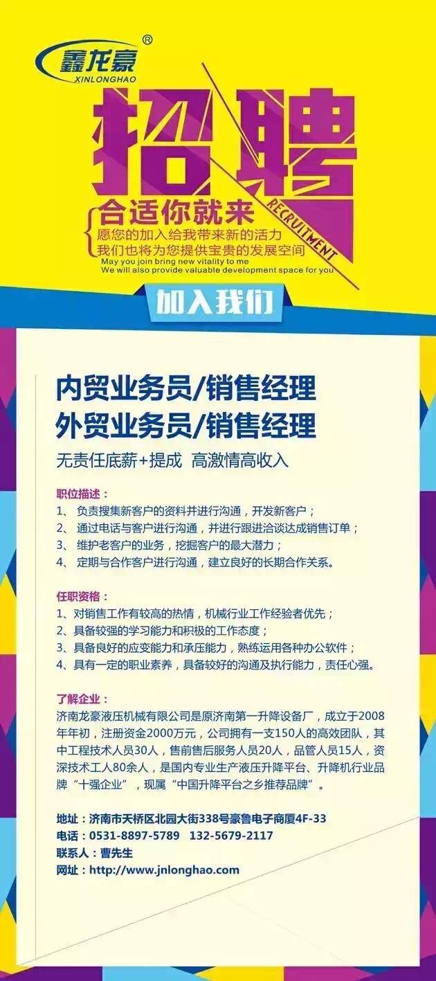 無(wú)責任底薪+提成,每月輕松收入過(guò)萬(wàn)!龍豪液壓,升降機的廠(chǎng)家,歡迎你的到來(lái)!