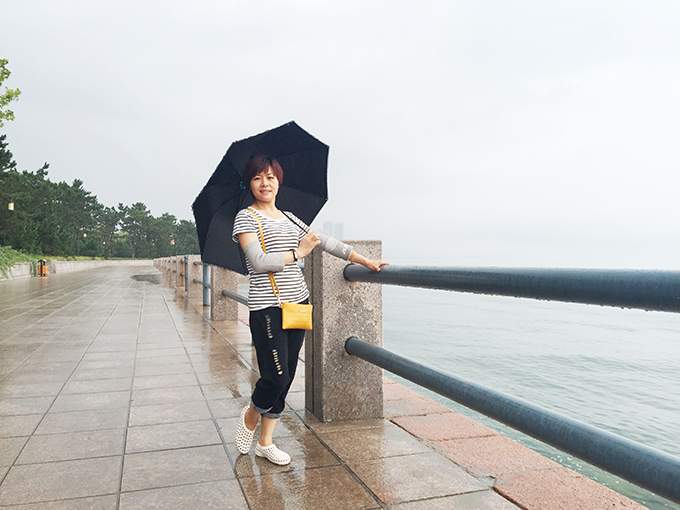 第二天,吃過(guò)早飯,漫步在威海沿海公園,細雨蒙蒙,好有情調。